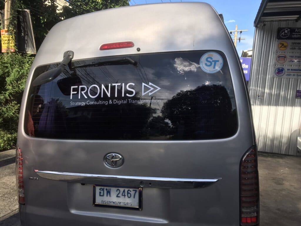 สติ๊กเกอร์โฆษณาติดกระจกหลังรถตู้